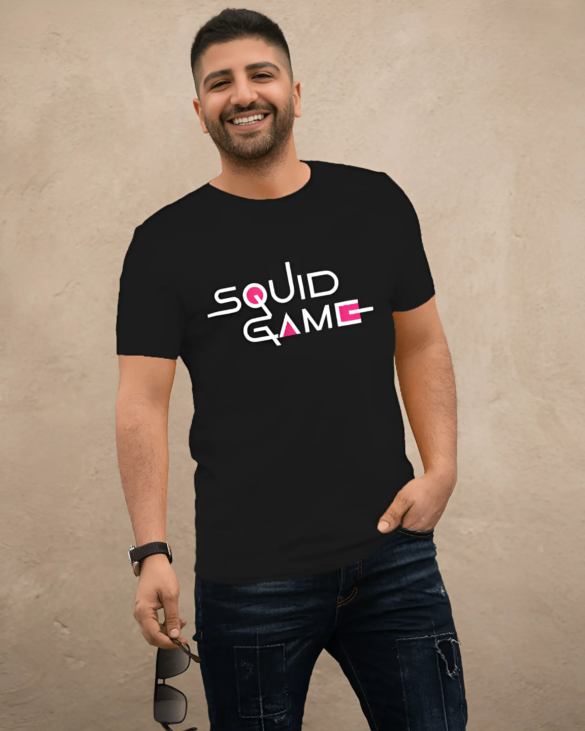 Squid Game Round Neck Half Sleeve Black T-Shirt